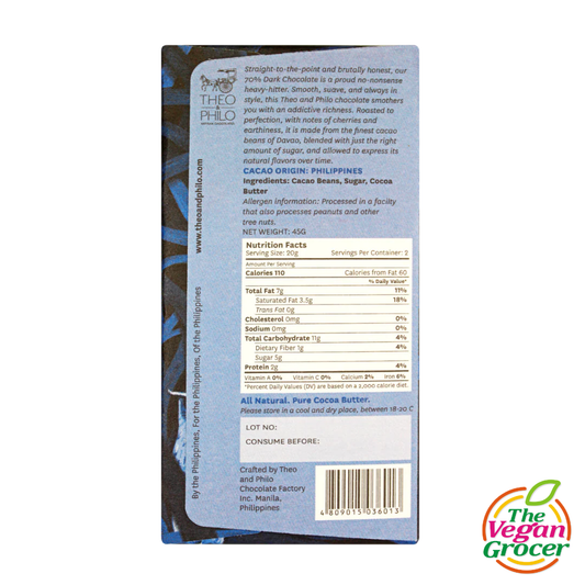 Sold outTheo & Philo 70% Dark Chocolate 45g