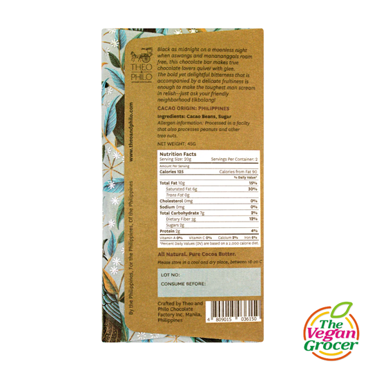 Theo & Philo 100% Cacao Tablea Malabog 120g (gluten-free, sugar-free)