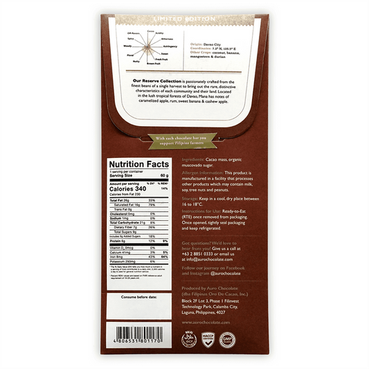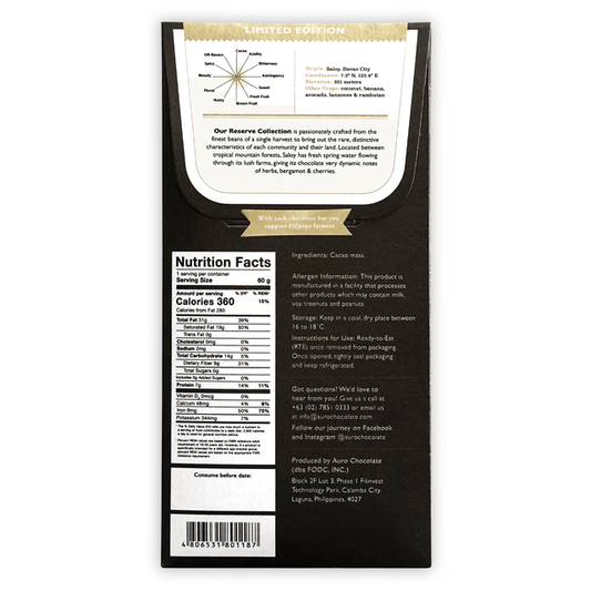 Auro Reserve Collection : 70% Paquibato Dark Chocolate 60g