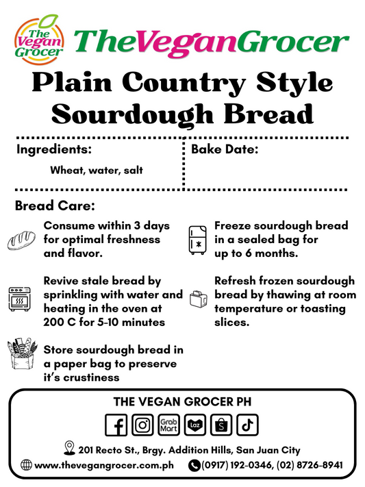 TVG Vegan Frozen Plain Country-Style Sourdough Bread (no sugar added)
