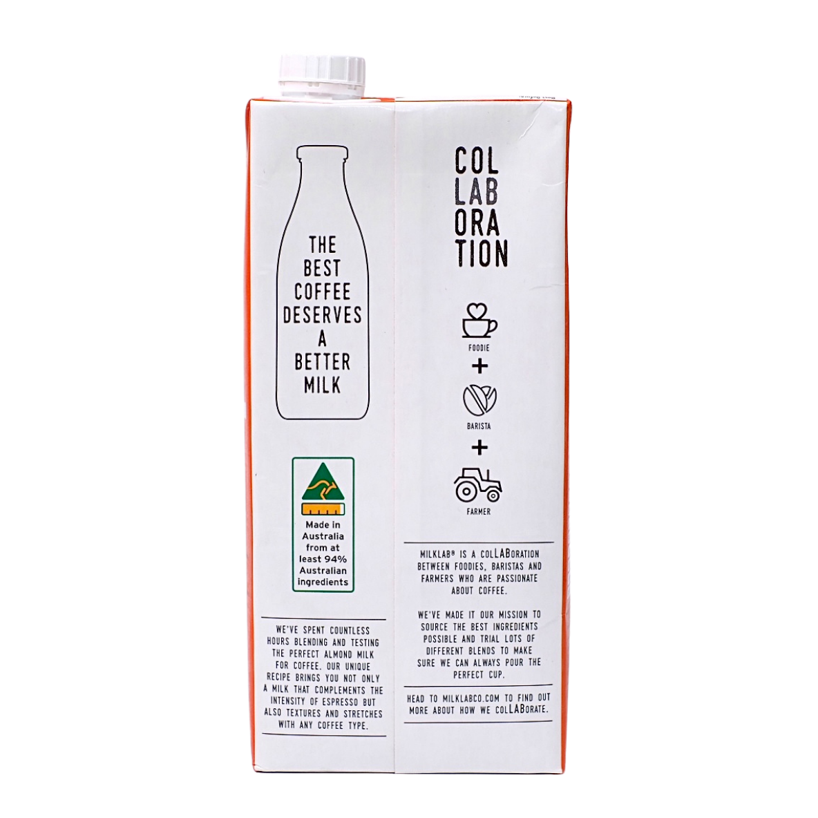 Milk Lab spent countless hours blending and testing the perfect almond milk for coffee. Milk Lab's unique recipe brings you not only a milk that compliments the intensity of espresso but also textures and stretches with any coffee type.