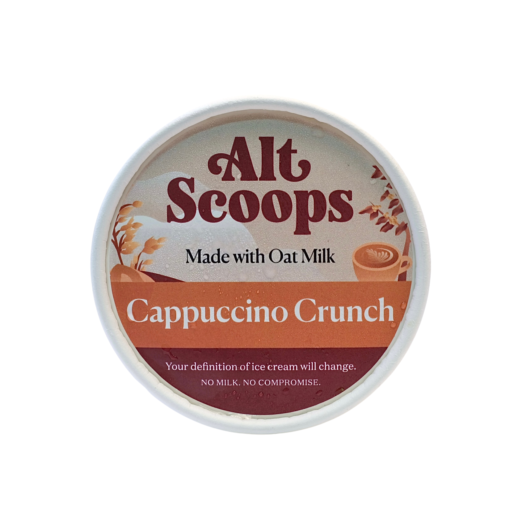 Smooth but with a kick. Creamy with a crunch. A cappuccino always has good balance of milk and espresso. Ours has Italian Arabica Espresso beans and Oat Milk. Add in a little bittersweet Auro Cacao Nibs coated in 64% Auro Couverture Chocolate &, and the flavor is truly something else. Topped with a chocolate swirl, enjoy every scoop like you do a freshly brewed cup of joe!"