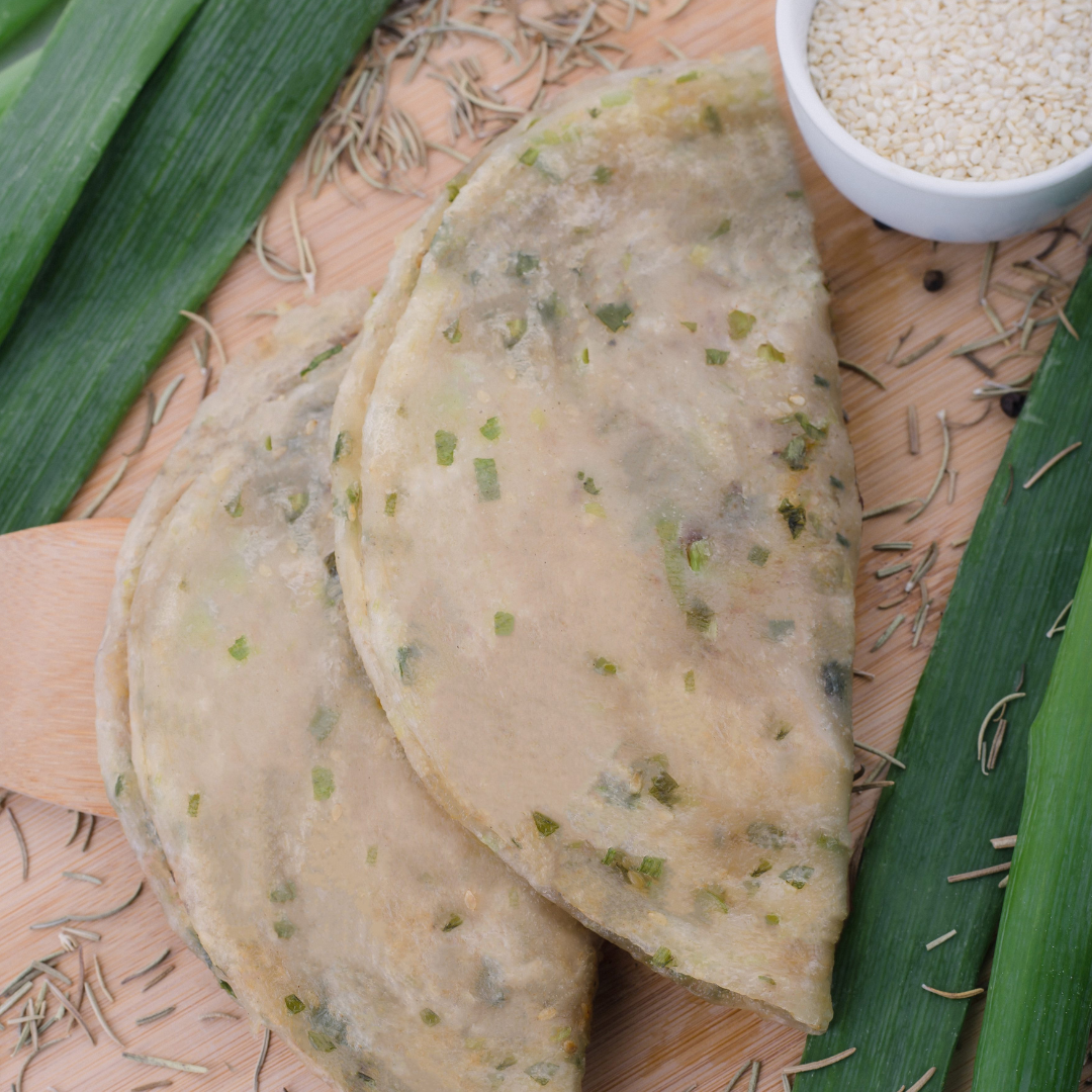 All purpose flour, water, onion leaves, oil, fried shallot, white sesame seeds, iodized salt, black pepper.