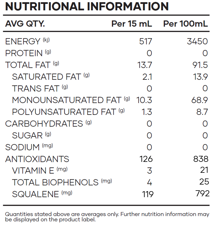 Best enjoyed fresh. This ultra premium extra virgin olive oil is ideal for risotto, all seafood and chicken dishes, dipping bread and as a replacement for butter (3/4 of directed amount).