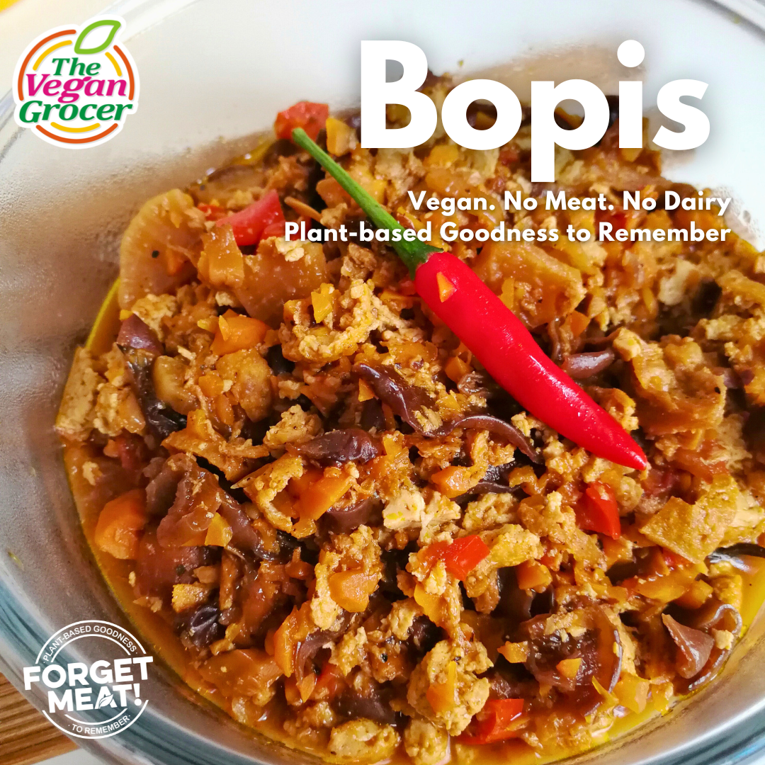 A bold and flavorful vegan dish with tofu, dried shiitake mushrooms, and radish, spiced with chili peppers and ginger, all simmered in a tangy annato-vinegar sauce.