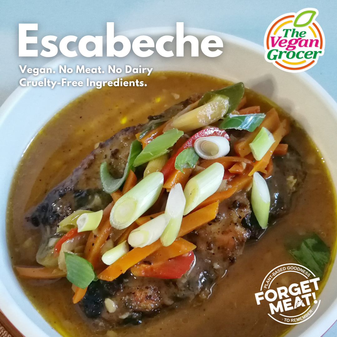 A zesty and tangy plant-based dish made with hearts of palm and nori, simmered with carrots, bell peppers, and a sweet vinegar sauce, without any mock meat.