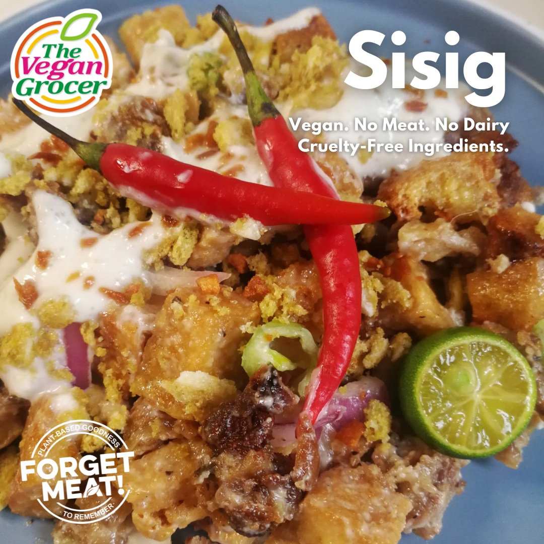 A sizzling mix of jackfruit, tofu, and green chilies, seasoned with calamansi and spices, delivering a deliciously smoky and tangy whole-food plant-based treat.