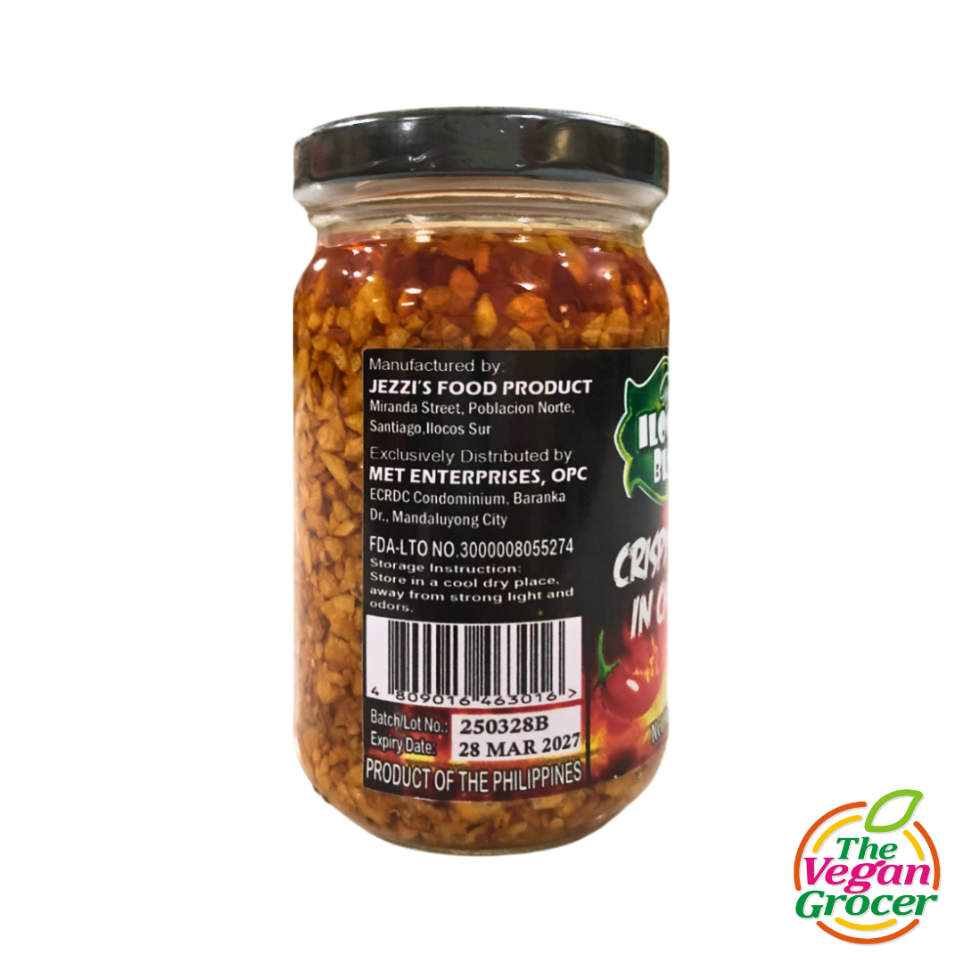 Enhance your dishes with Gio's Ilocano Blend Crispy Garlic in Chili Oil. Made with the perfect balance of garlic and chili, it adds a delicious crunch and spicy kick to any meal. Perfect for stir-fries, marinades, and more. Experience the bold flavors of Ilocano cuisine in a jar.