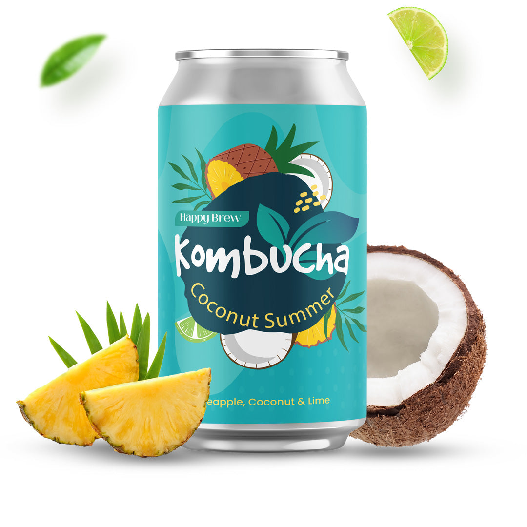 Happy Brew Kombucha Culture (Filtered Water, Green Tea, Live Kombucha Scoby), Cane Sugar, Real Coconut, Pineapple, Lime, And 100% Happy Bubbles!