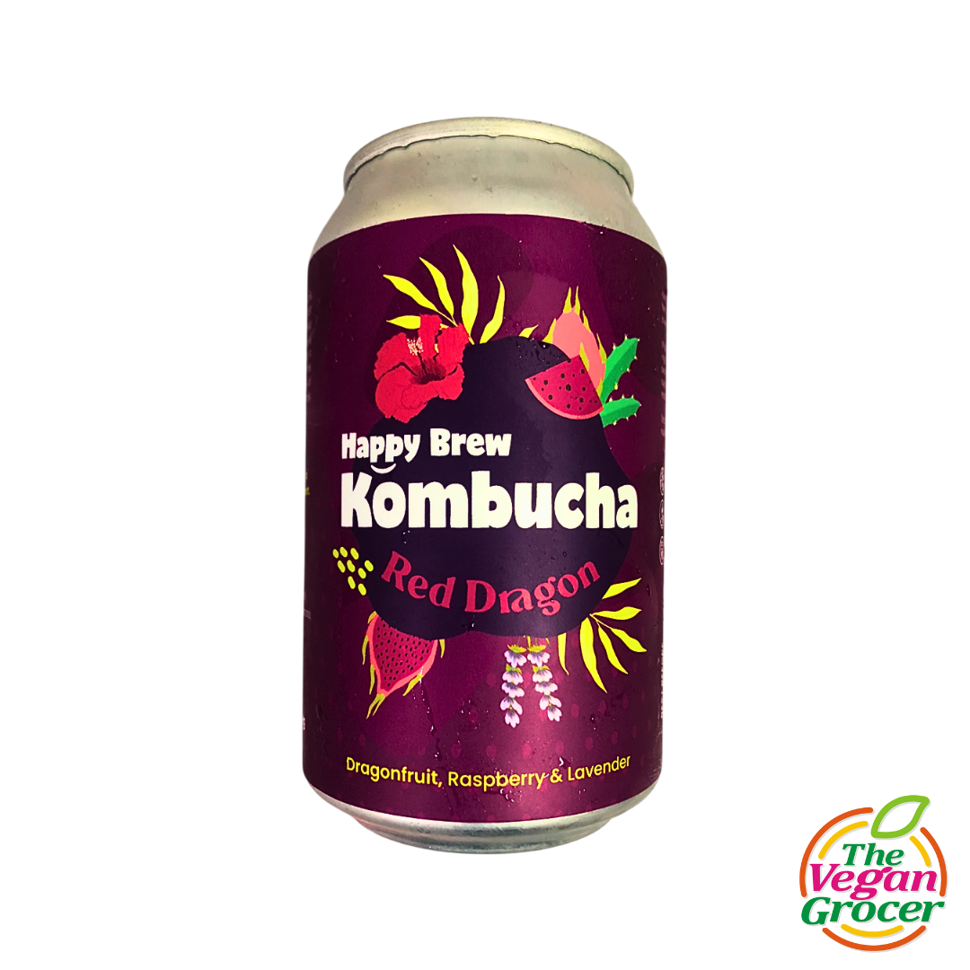 Happy Brew Kombucha Culture (Filtered Water, Green Tea, Live Kombucha SCOBY), Cane Sugar, Dragonfruit, Raspberry, Calamansi, Lavender, and 100% Happy Bubbles!