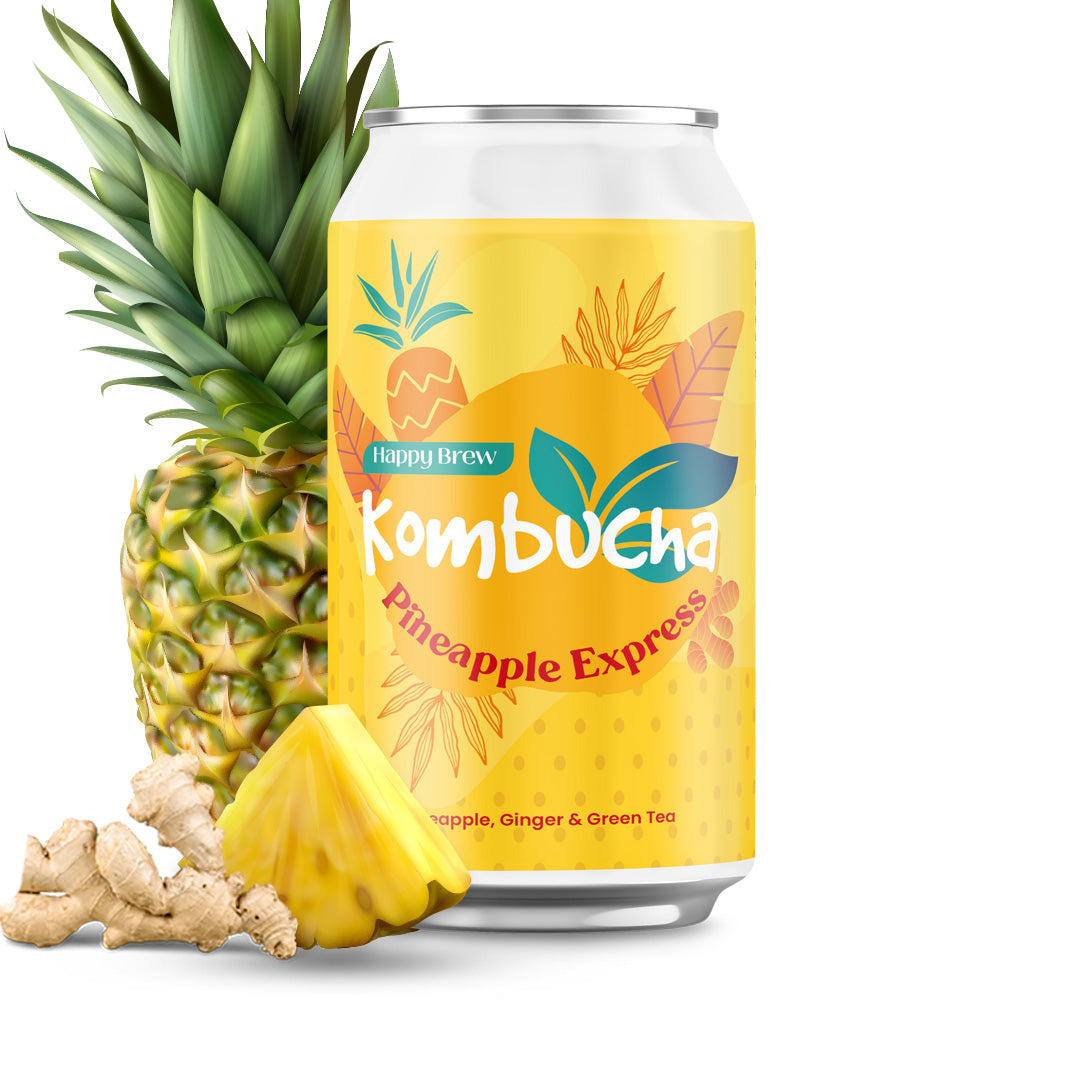 Happy Brew Kombucha Culture (Filtered Water, Green Tea, Black Tea, Live Kombucha Scoby), Cane Sugar, Ginger, Turmeric, And 100% Happy Bubbles!
