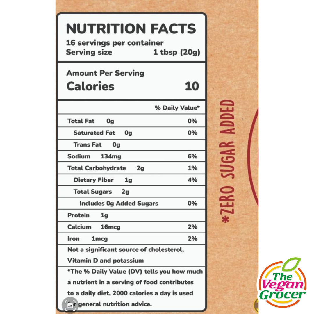 Tomato paste, stevia, erythritol, garlic powder, onion powder, paprika, cinnamon, iodized salt, white vinegar, distilled water.