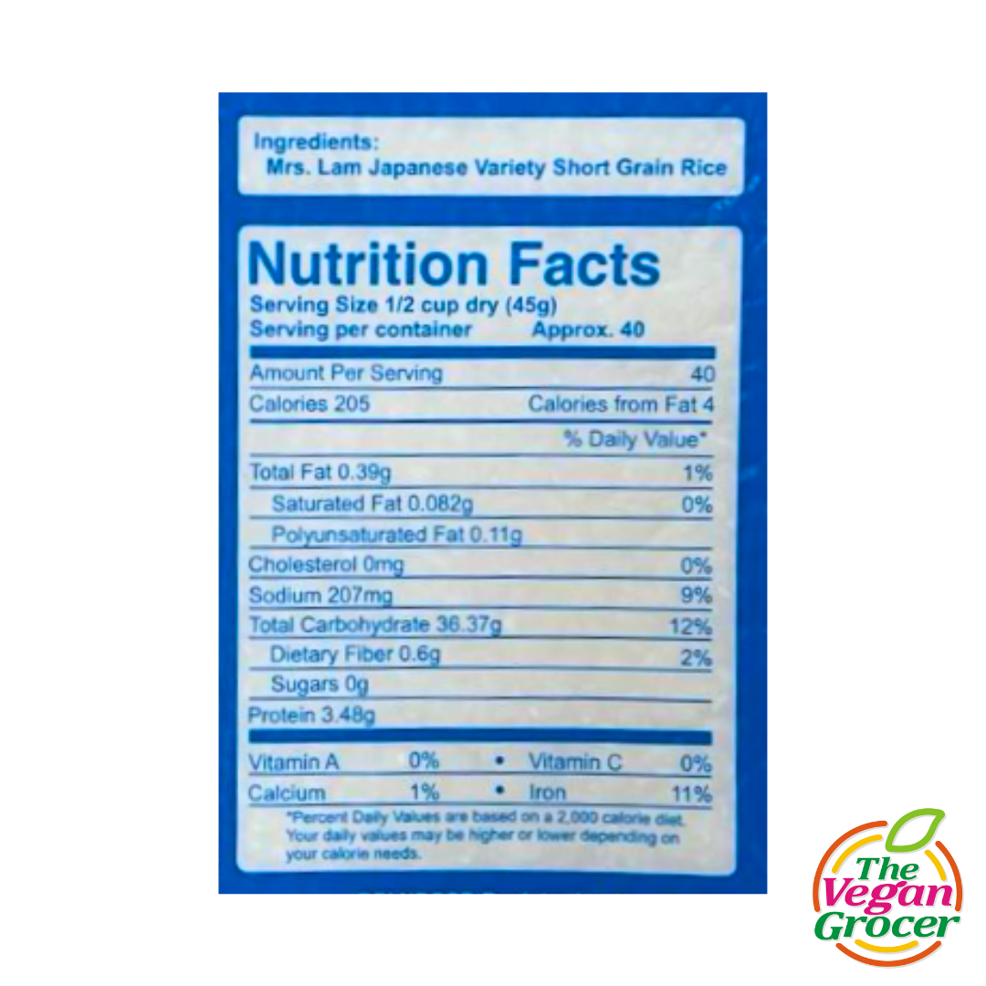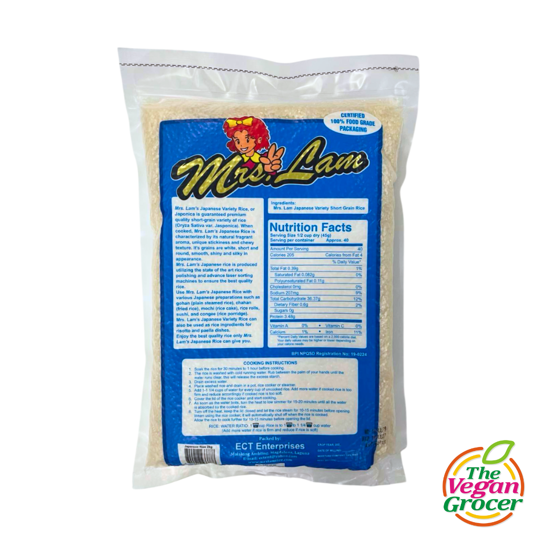 INGREDIENTS: Mrs. Lam Japanese Variety Short Grain Rice