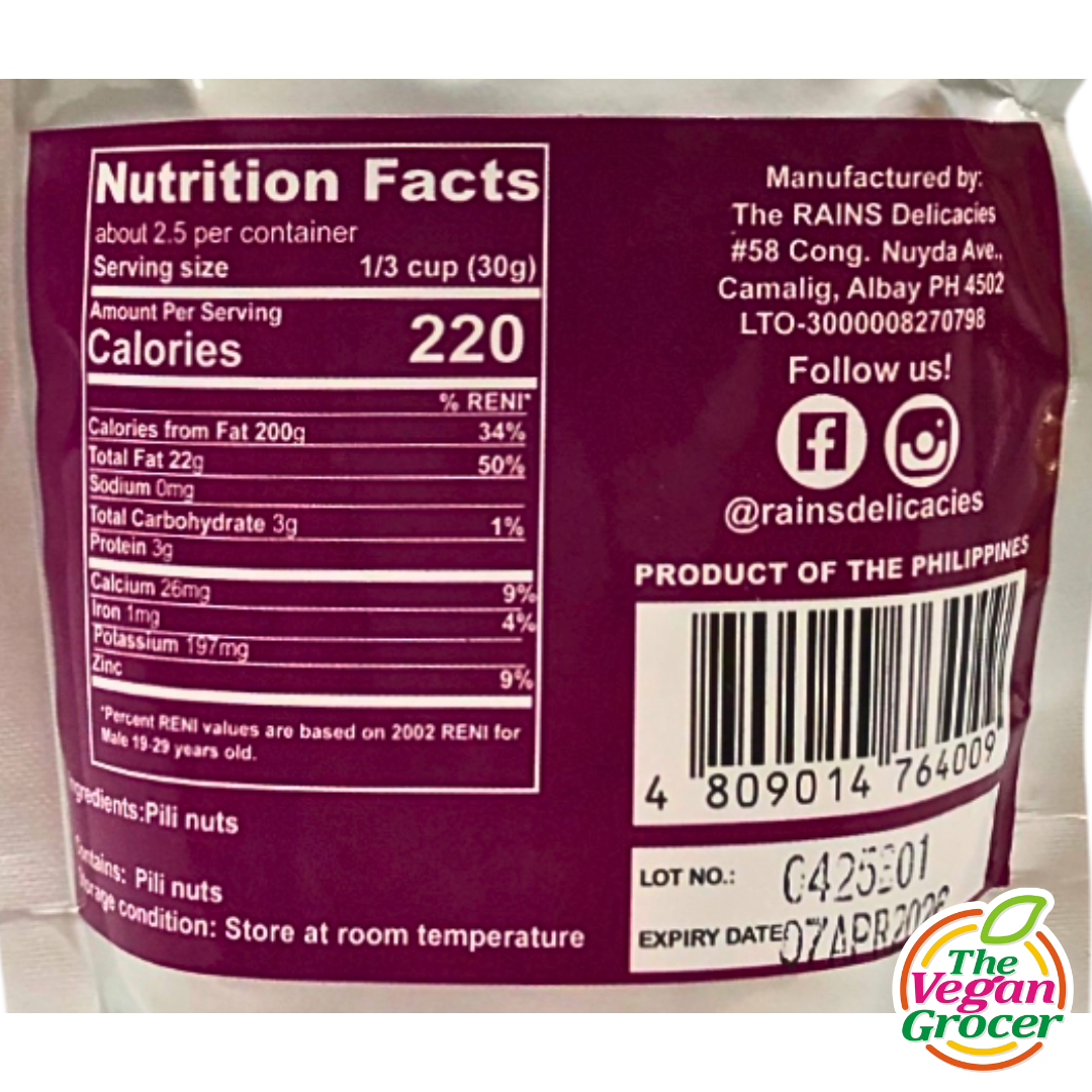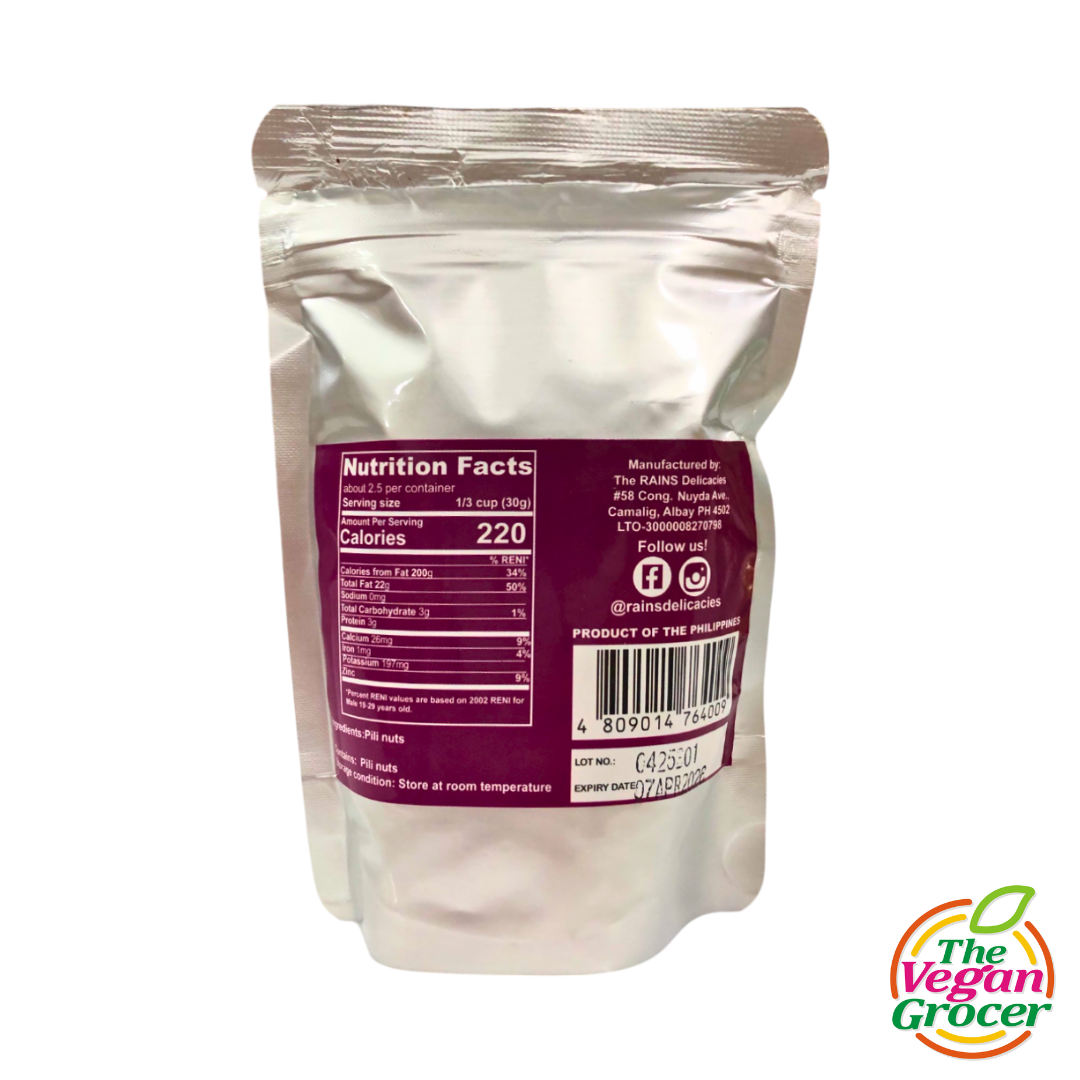 ` Roasted as it is so you can enjoy the rich, buttery goodness of pili; rich in magnesium, vitamin E, protein, and other essential minerals; harvested from the pili trees grown in the mineral-rich, volcanic soil of Mayon.