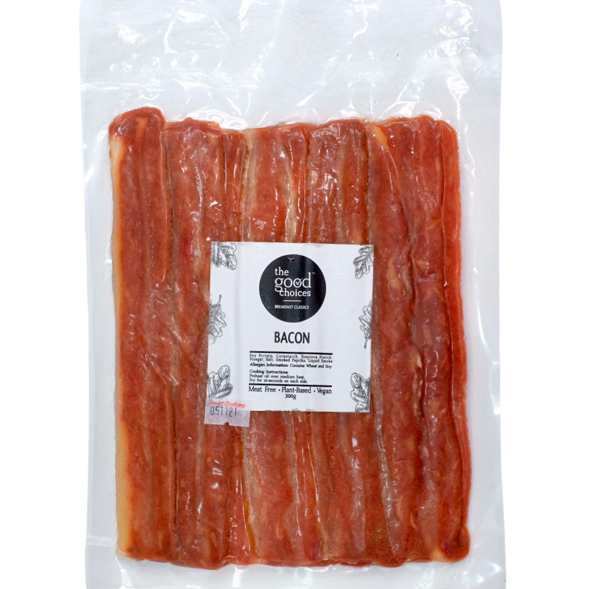 Discover crunchy, delicious vegan bacon with Good Bacon. Enjoy the same great taste without the guilt, with all the pleasure and none of the cholesterol. Perfect for breakfast, lunch, or dinner, this plant-based bacon adds a delicious smoky flavor to any meal. Try it today and experience the joy of good bacon!