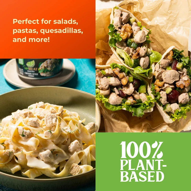 We just made canned chicken cool again. Yep, you read that right we're talking about canned chicken that is 100% plant-based! Made with non-GMO ingredients, over 17 grams of protein per can, but no cholesterol or added preservatives you can feel good about swapping us in for your favorite chunk chicken recipes (chicken salads, quesadillas, fried rices, the list goes on and on).