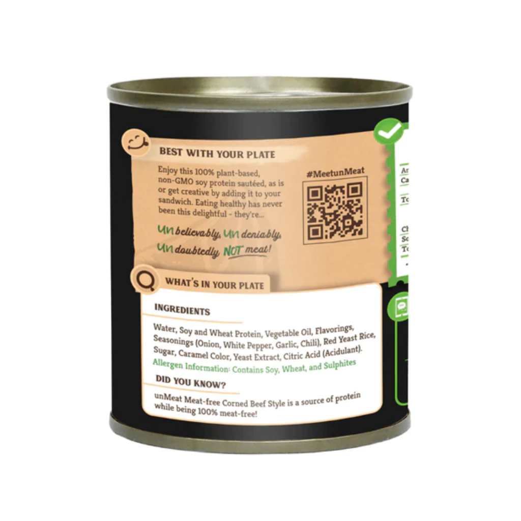 combination of soy and wheat proteins. Seasoned with flavors and spices to bring out the delicious taste of Filipino-style Corned Beef.