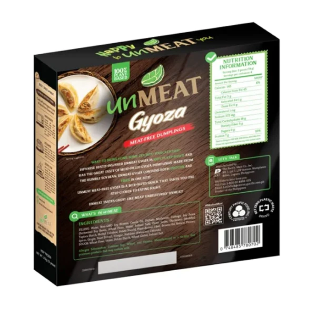Description: Japanese resto-inspired unmeat gyoza is 100% PLANT-BASED and has the great taste of meat-filled gyoza dumplings made from the humble soybean.