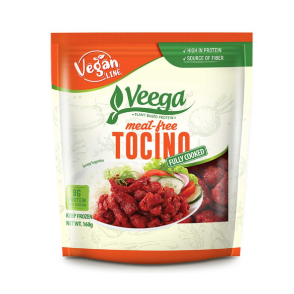 Veega Meat-Free Tocino is made with plant-based proteins, offering a high source of protein, a source of fiber and delicious goodness. This tocino is simply vegan, with no artificial color. Now you can enjoy this staple Filipino breakfast without the guilt! Just heat in an air-fryer, oven toaster or pan fry, ready in a few minutes.