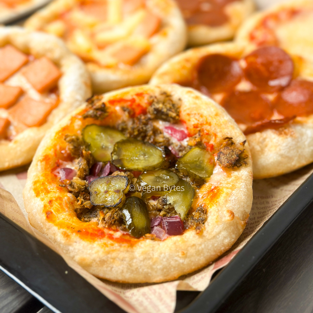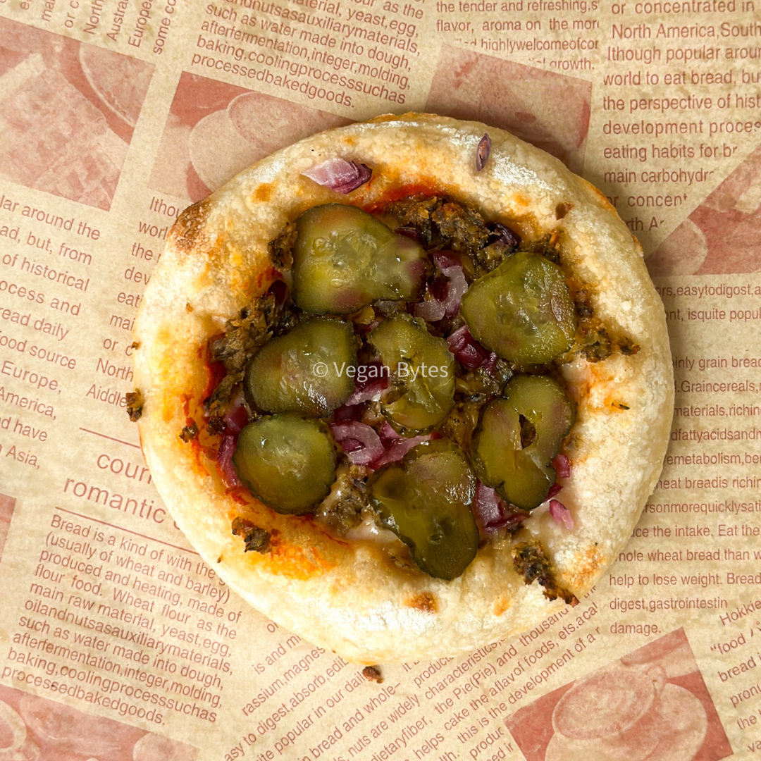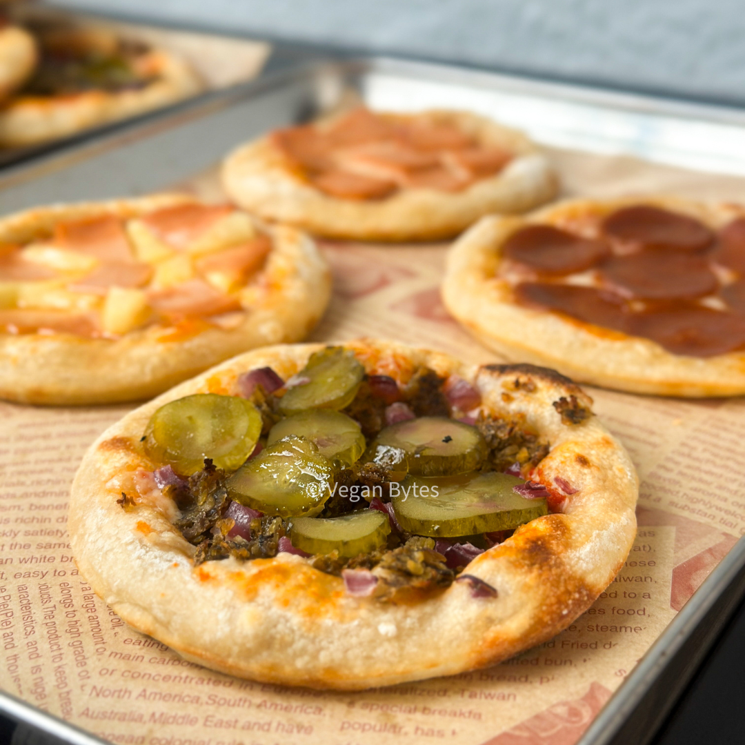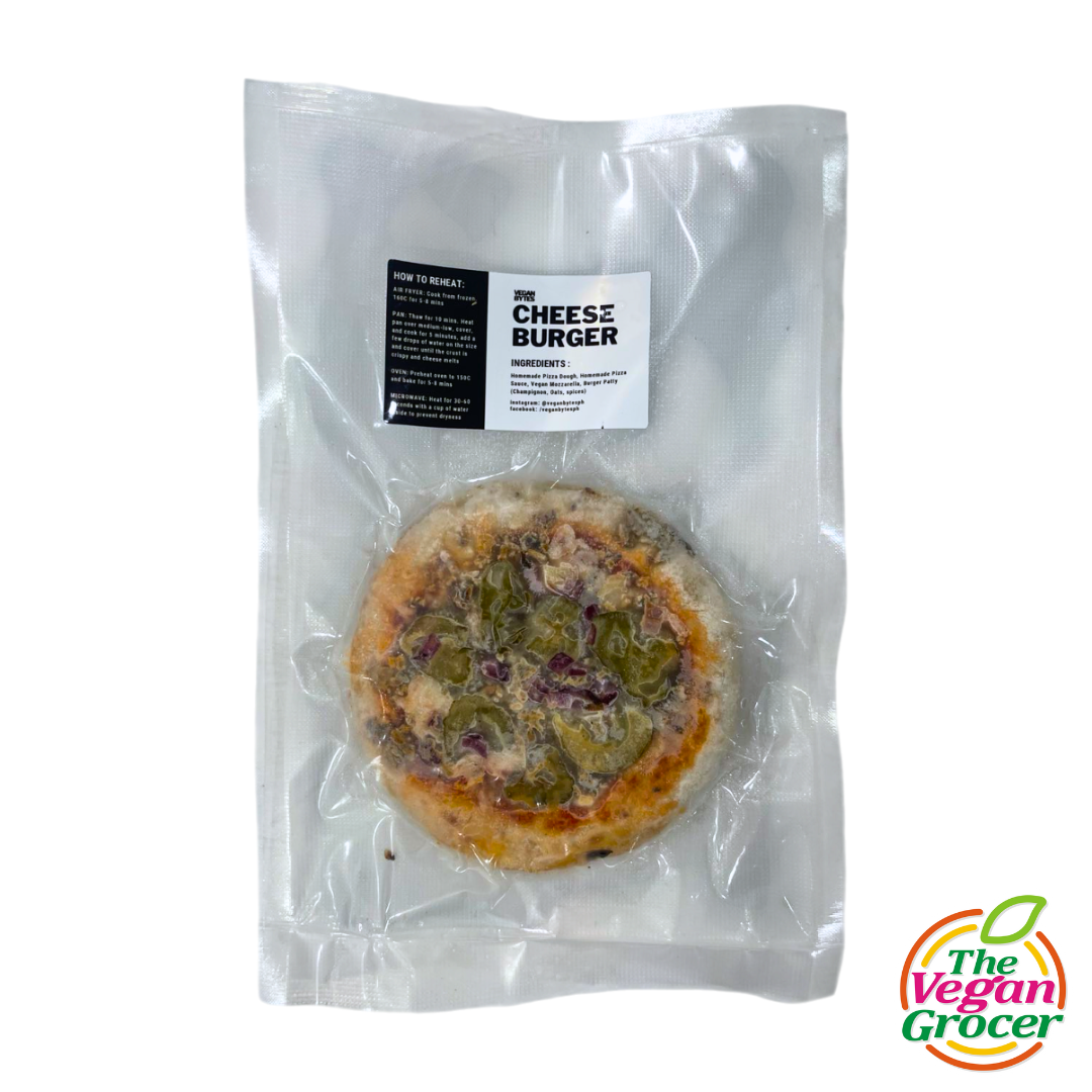Savor the irresistible taste of our Vegan Bytes Cheeseburger Pizza 5". Crafted entirely from plant-based ingredients, it delivers the classic cheeseburger flavor you love without any animal products. Perfectly sized for a quick, satisfying meal, this pizza combines rich vegan cheese, savory plant-based burger bites, and a flavorful tomato sauce on a crispy crust. Enjoy a guilt-free indulgence that’s both delicious and compassionate.